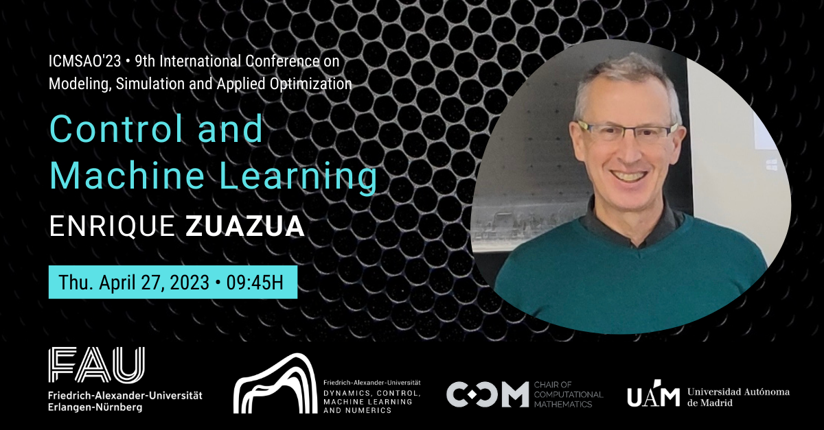 On April 27, 2023 our Head Prof. Enrique Zuazua will talk as keynote speaker on “Control and Machine Learning” at the ICMSAO’23, a venue for engineers and scientists from all over the world to share their latest research results in the areas of modeling, simulation and optimization organized by the American University of Sharjah, UAE, SIAM, Durham University on April 26-28, 2023 in Marrakesh, Morocco.