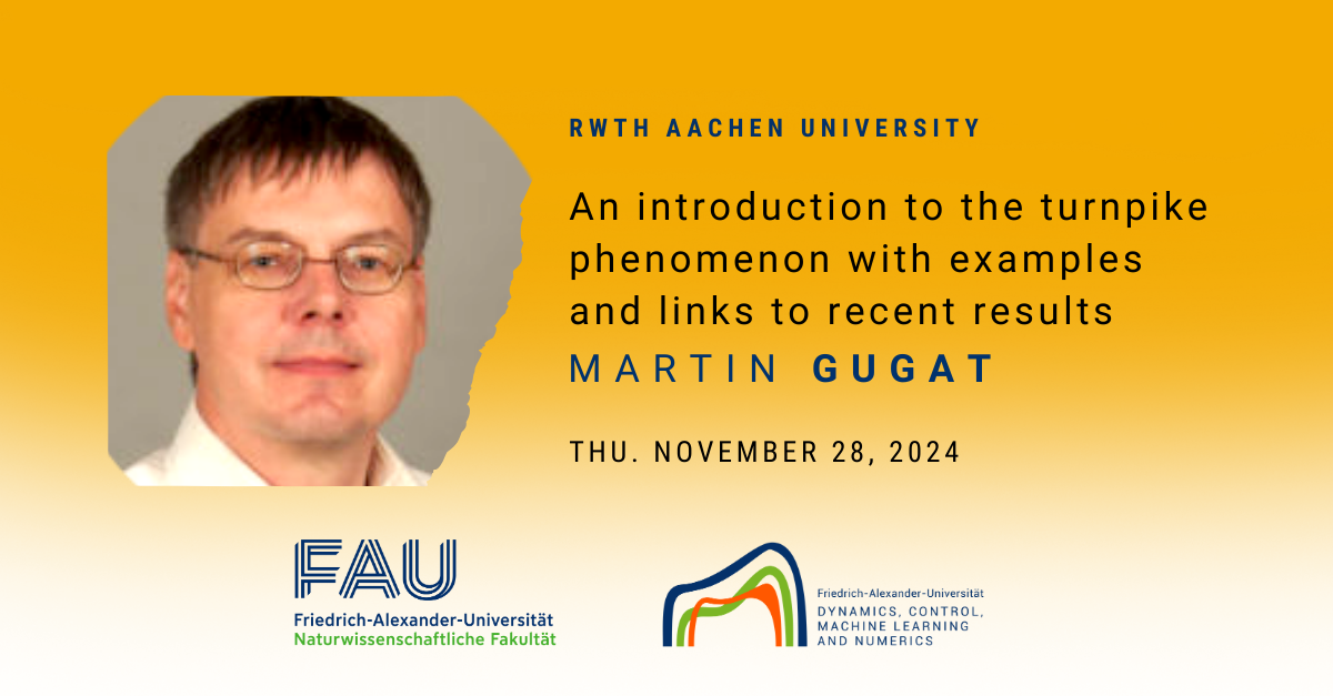 Next Thursday November 28, our Prof. Akad. Martin Gugat, will talk on “An introduction to the turnpike phenomenon with examples and links to recent results” a weekly seminar organized by the RWTH AAchen University.