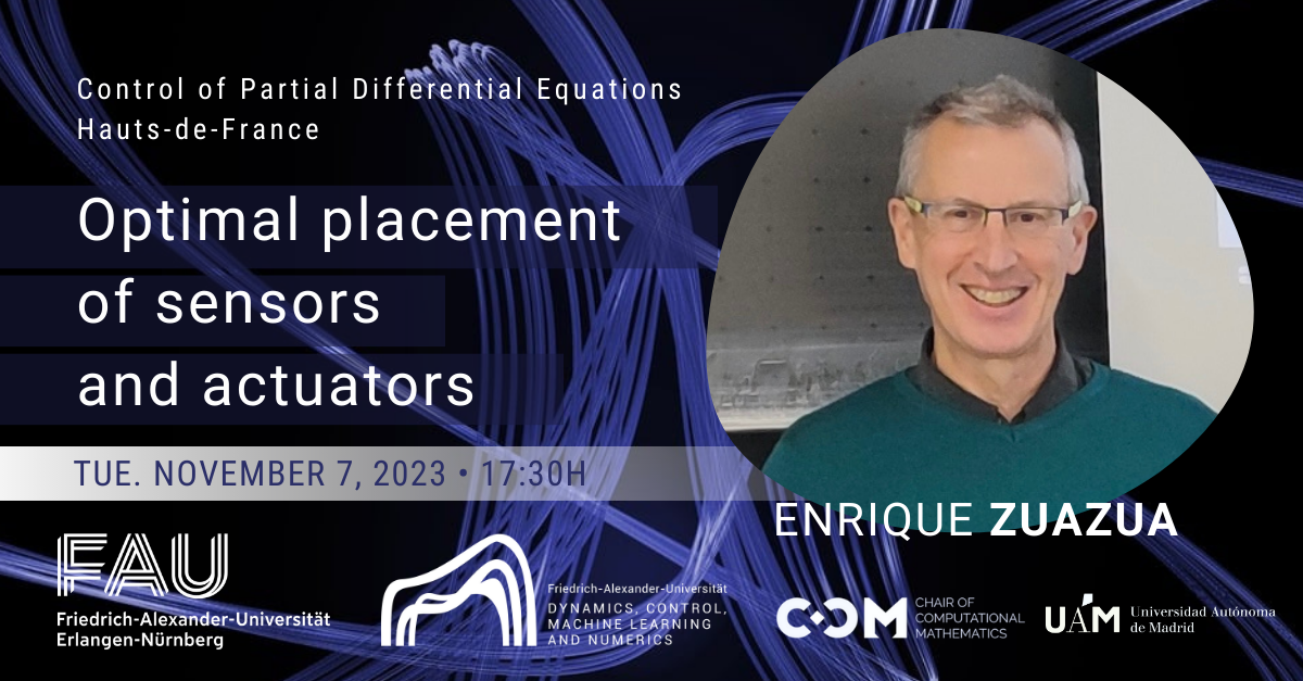 On November 7, 2023 our Head Prof. Enrique Zuazua will talk on “Optimal placement of sensors and actuators” at the “Control of Partial Differential Equations in Hauts-de-France” (CPDEs2023) organized by UPHF, Ulille, ULCO on November 6-8, 2023 in France.