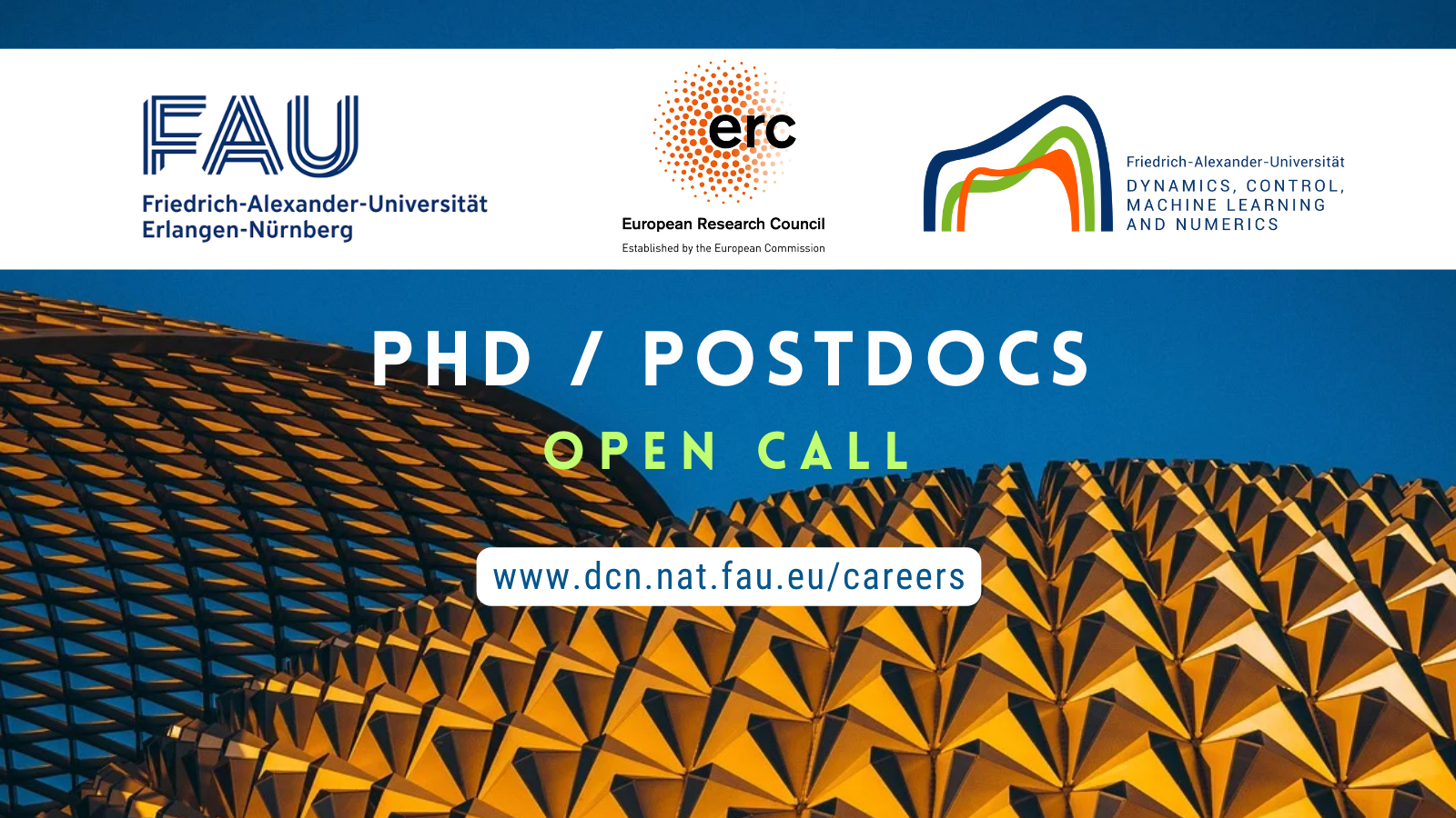 The “Chair for Dynamics, Control, Machine Learning, and Numerics – Alexander von Humboldt Professorship (FAU DCN-AvH),” led by Prof. Enrique Zuazua, invites applications for one (01) PhD and two (02) open postdoctoral research positions at the ERC CoDeFeL, Control for Deep and Federated Learning project.