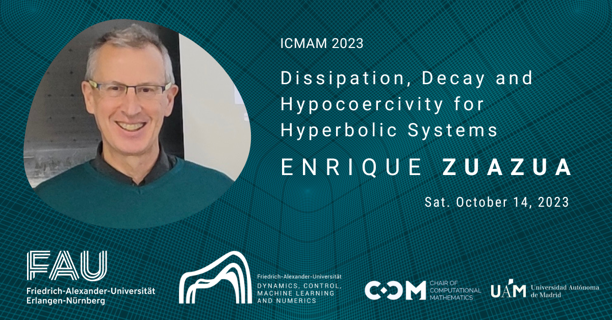 On October 14, 2023 our Head Prof. Enrique Zuazua will talk on “Dissipation, Decay and Hypocoercivity for Hyperbolic Systems” at the “ICMAM Latin America Satellite Conference on Analysis and PDE 2023” supported by the International Society for Analysis, its Applications and Computation (ISAAC) on October 10 – 14, 2023.