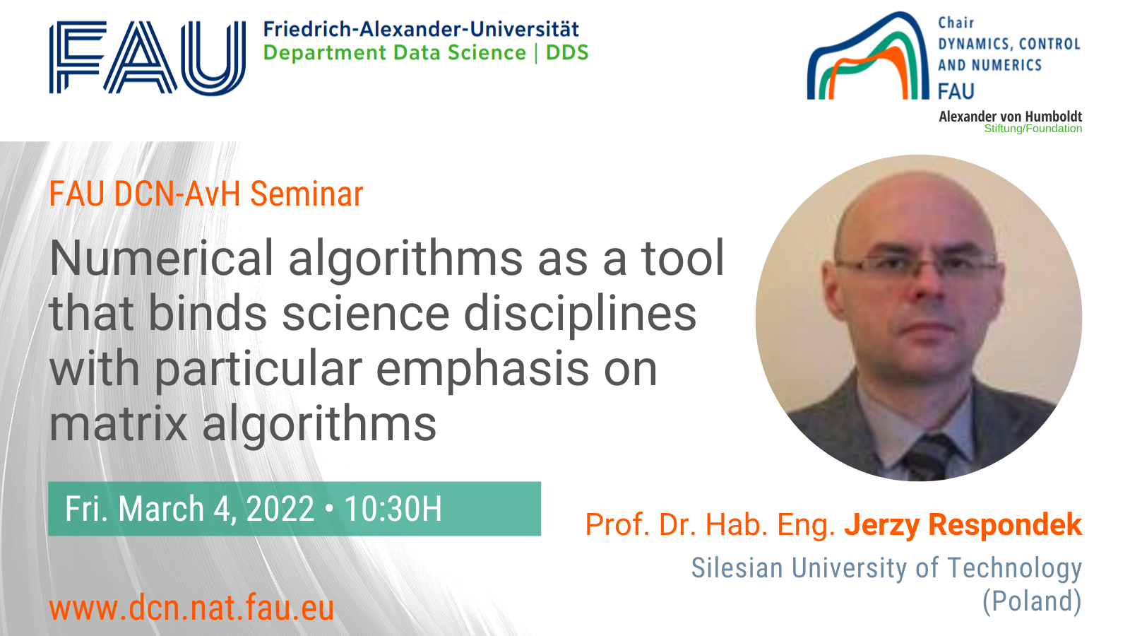 Organized by: FAU DCN-AvH, Chair for Dynamics, Control and Numerics – Alexander von Humboldt Professorship at FAU Erlangen-Nürnberg (Germany)