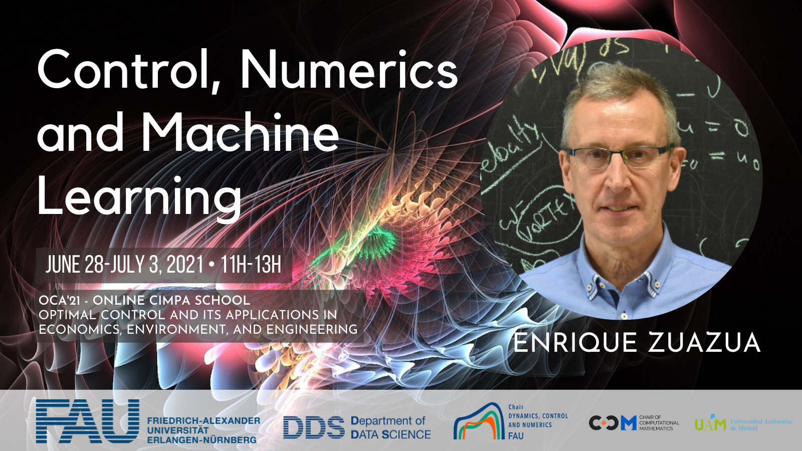 On June 28th. to July 3rd., our Head Enrique Zuazua will talk on “Control, Numerics and Machine Learning” at the Online CIMPA School (OCA’21): Optimal Control and its Applications in Economics, Environment, and Engineering organized and supported by CIMPA, UIR, Mines-Rabat, Université Mohammed V de Rabat, Faculté de Droit de Rabat-Agdal, Faculté des Sciences Rabat, CNRST and INSEA.