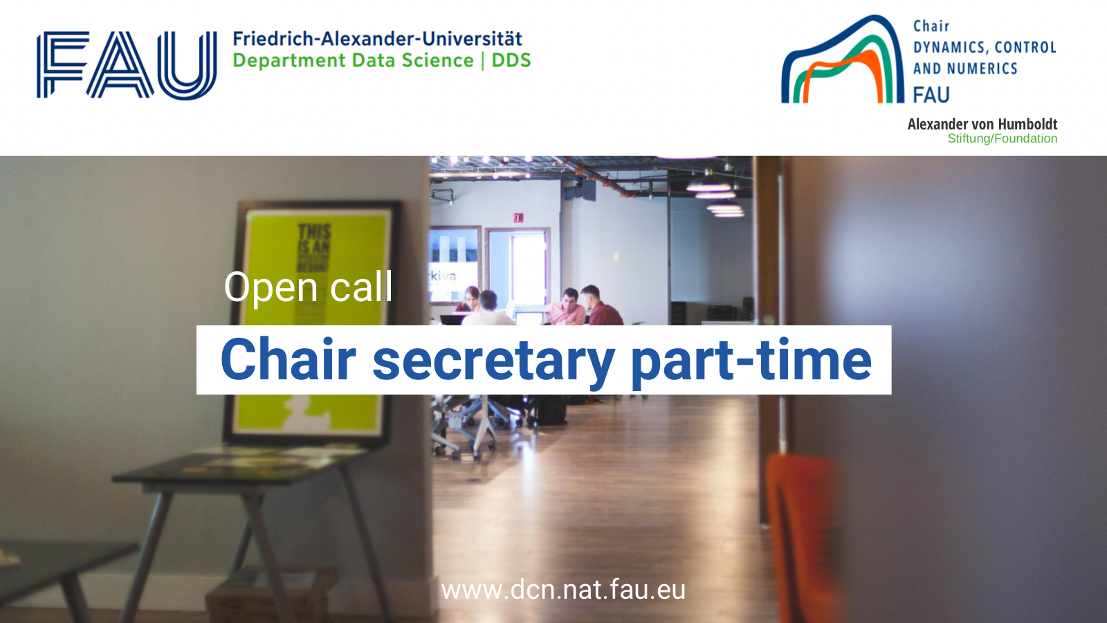 The Chair for Dynamics, Control and Numerics – Alexander von Humboldt Professorship (FAU DCN-AvH) at Friedrich-Alexander-Universität Erlangen-Nürnberg is looking for a Chair Secretary (Part time 25%)