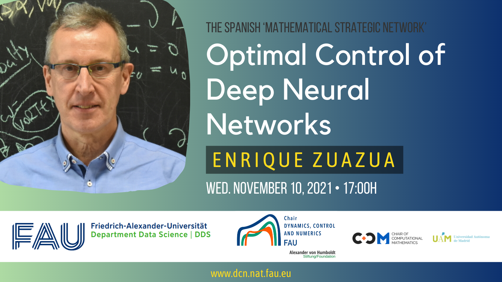 On November 9th, our Head Enrique Zuazua will be talking about “Optimal Control of Deep Neural Networks” on the “New Bridges between Mathematics and Data Science” organized by the University of Valladolid on November 8th. – 11th, 2021.