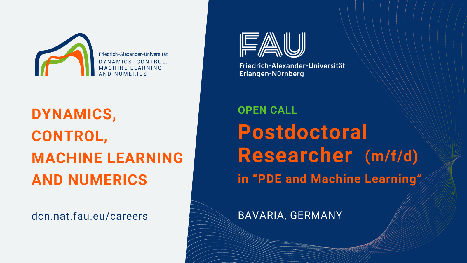 The “Chair for Dynamics, Control, Machine Learning, and Numerics – Alexander von Humboldt Professorship (FAU DCN-AvH)”, led by Prof. Enrique Zuazua, invites applications from excellent candidates for a postdoctoral researcher position.