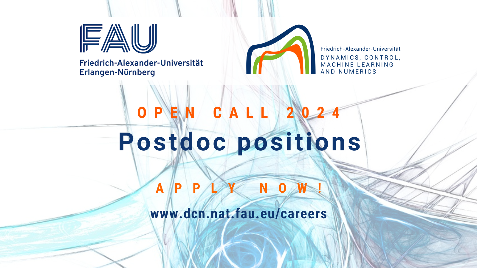 The “Chair for Dynamics, Control, Machine Learning, and Numerics – Alexander von Humboldt Professorship (FAU DCN-AvH),” led by Professor Enrique Zuazua, invites applications for three (03) open postdoctoral positions. The positions are aimed at individuals with a strong background in Partial Differential Equations, Control and Machine Learning, and their Numerical Analysis and Computational counterparts.