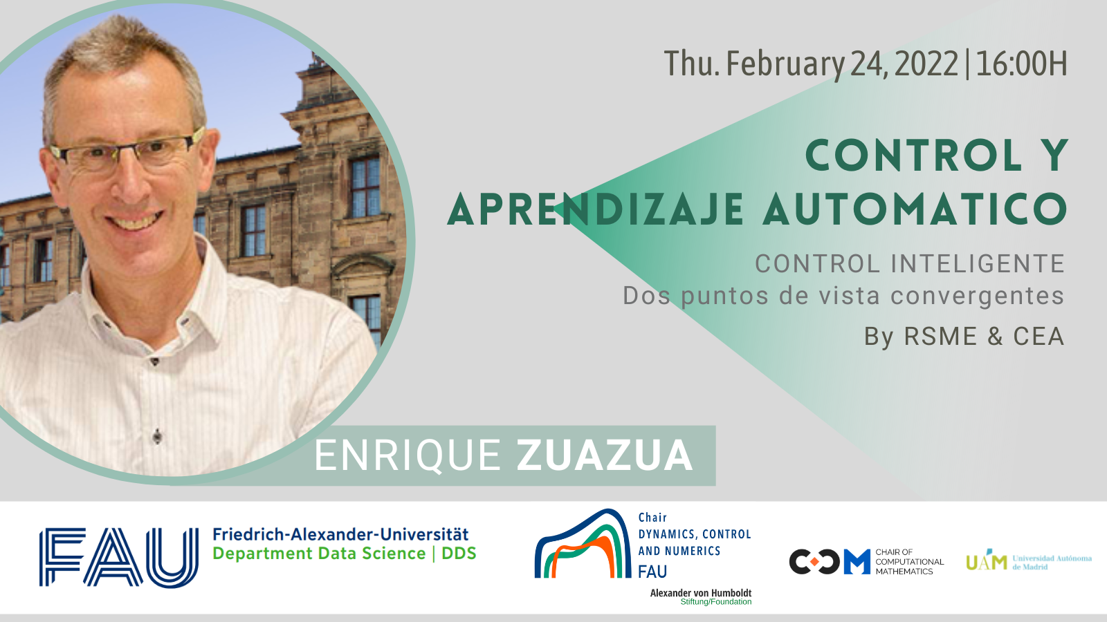 On February 24th, our Head Prof. Enrique Zuazua will talk on “Control and Machine Learning” (“Control y Aprendizaje Automático”) at the “Smart control. Two converging points of view” event (“Control Inteligente. Dos puntos de vista convergentes”) organized by RSME – Real Sociedad Matemática Española y CEA – Comité Español de Automática.