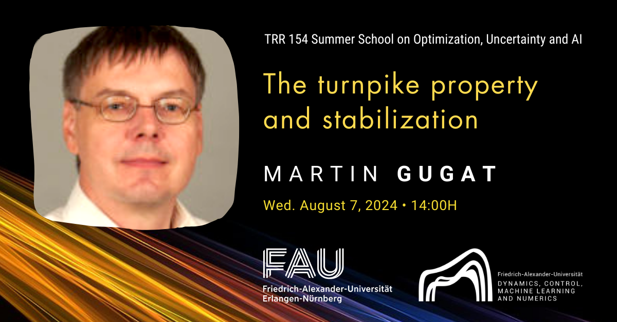 Next Summer, on Wednesday August 7, 2024 our Akad. Director Prof. Dr. Martin Gugat will talk on “The turnpike property and stabilization” at the TRR 154 Summer School on Optimization, Uncertainty and AI organized on August 7-9, 2024 at Universität Hamburg.