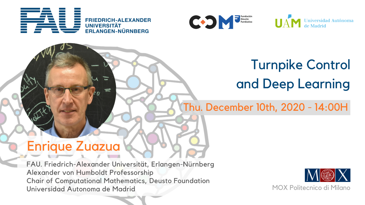 Worldwide. This Thursday December 10th. our Head Enrique Zuazua will be talking about “Turnpike control and deep learning”, a seminar organized by the MOX Politecnico di Milano.