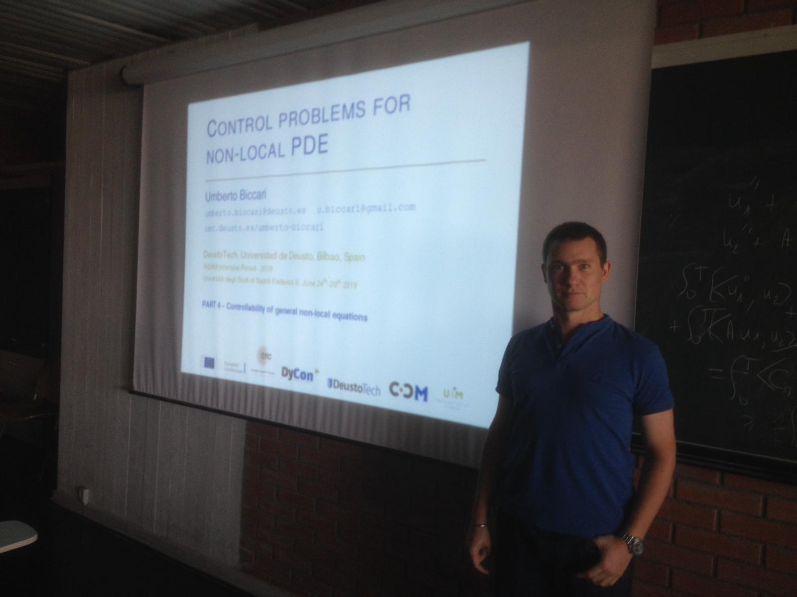 Italy. 28.06.2019. From June 24th to June 28th, 2019, Umberto Biccari visited the Department of Mathematics “Renato Caccioppoli” in Naples, Italy. In that occasion, he taught the intensive course “Control problems for non-local PDEs”, within the framework of INDAM Intensive Period on “Shape optimization, control and inverse problems for PDEs”.