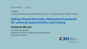 Our last news at DeustoCCM – Chair of Computational Mathematics Spiking Neural Networks: theoretical framework for universal approximation and training – 3rd. meeting of the COPI2A network A multi-objective optimization framework for decentralized learning with coordination constraints – 3rd. meeting of the COPI2A network Benasque XI Workshop-Summer School 2026: Partial differential equations, optimal design and numerics The Mathematics of Scientific Machine Learning and Digital Twins DeustoCCM Seminar: Research on Control Problems of Several Types of Infinite-Dimensional Systems DeustoCCM Seminar: Developing Mathematical and Physical Tools for Multiscale Dynamical Systems. Applications to Neurophysiological Data Collaboration meeting (July 11, 2025) Joint meeting (July 10, 2025) Collaboration meeting (July 7, 2025) DeustoCCM Seminar by R. Orive and A. Alvarez DeustoCCM Seminar by R. Lecaros and J. Lopez Meeting Prof. Manfredi, Pitt. (June 27, 2025) DeustoCCM Seminar: Universal approximation and convexified training in neural networks 1 2 3 … 8 ›